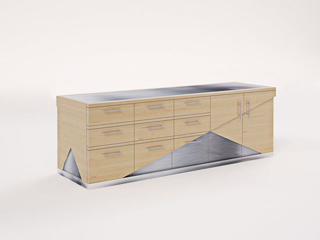 The Umbria credenza presents a sleek blend of natural wood with metallic highlights, offering ample storage and a dash of elegance to elevate any executive suite.