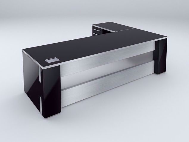 As shown Sleek black and silver finish, minimalist design with ample workspace and discreet cable management for a clutter-free office.