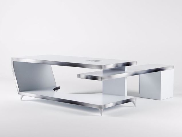 Embrace the future with this all-metal, ultra-modern desk. Mirrored finishes showcase style and success, perfect for the avant-garde executive’s office