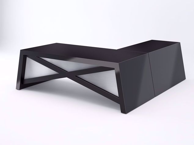 Nantes Desk shines with its black high gloss laminate, creating a dramatic impact. The bold X-frame legs add a dynamic edge, perfect for a sleek, contemporary office and optional return.