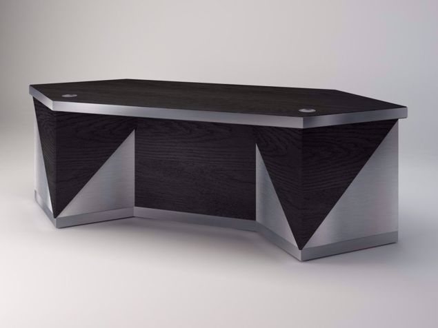 Santorini Modern Executive Desk, with gorgeous dark walnut veneer juxtaposed with brushed aluminum accents projects a quiet strenght in executive environment.