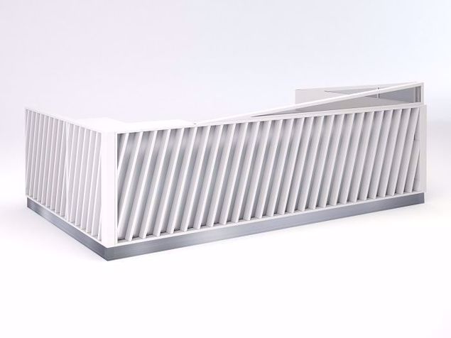 Arcadia Reception Desk brings an architectural edge with its sculpted, vertical fluted design, marrying functionality with artful craftsmanship for a modern business’s welcome area.