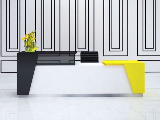 Austin Reception Desk boasts a bold color-block design with a pop art flair, combining striking yellow with sleek black and white for an unforgettable, vibrant welcome.