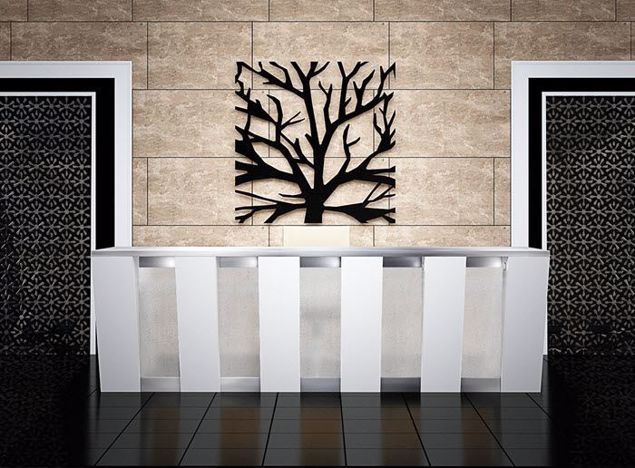 The Cypress Reception Desk is a striking combination of modern design and functionality, featuring translucent acrylic panels framed by brushed aluminum, creating a light, sophisticated entry piece that’s both stylish and welcoming.