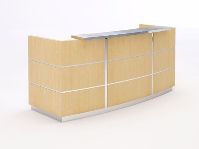 The Lauderdale Modern Reception Desk Light maple laminate with sleek lines and silver accents for a fresh, modern look that brightens any welcoming space.