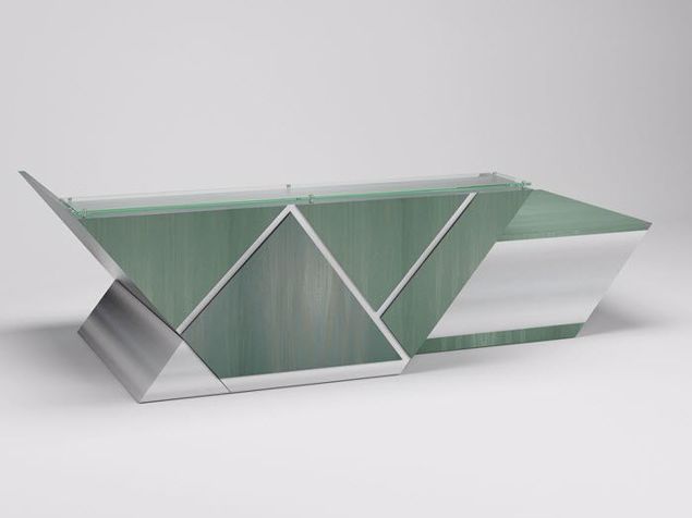 The San Antonio reception desk is an embodiment of sophistication with its patina laminate, complemented by the sleekness of brushed aluminum. The glass transaction top adds a layer of elegance and modernity, making it a statement piece for any welcoming business environment.
